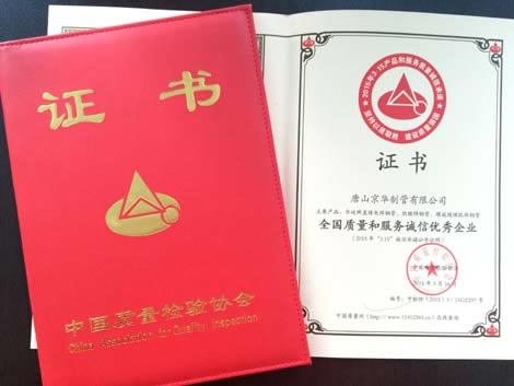 近日,唐山京华荣获由中国质量检验协会授予的“全国质量和服务诚信优秀企业”称号,这是对我公司产品质量和服务质量的充分肯定。“以诚信谋发展”是唐山京华不变的理念,诚信的产品质量与服务是公司不断发展壮大的根基。