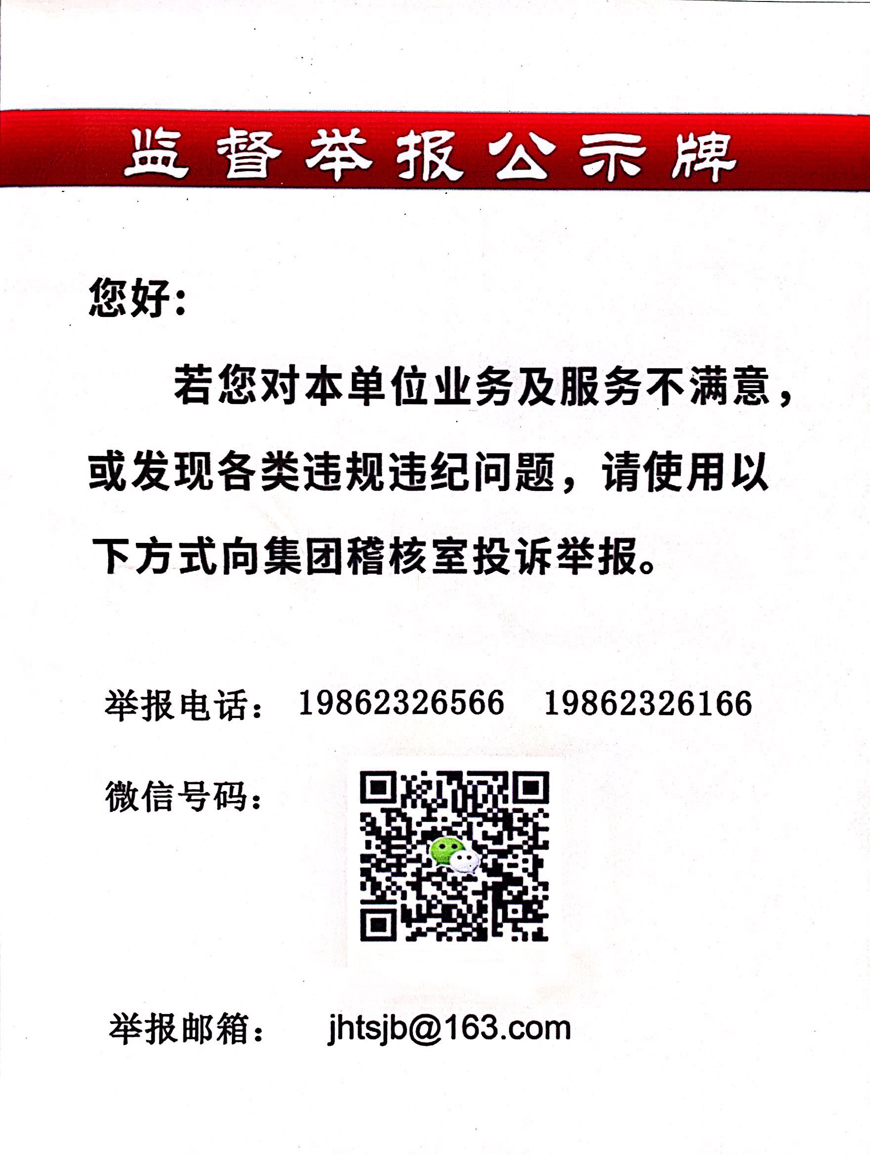 唐山京华监督举报公示牌