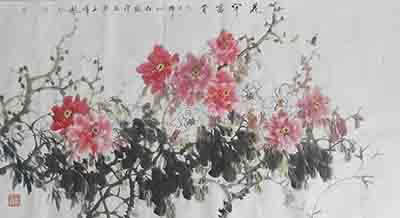 10月7日,当代著名画家王玉伟到访九游在线登录入口,受到公司领导热情接待。图为王玉伟即兴创作《花开富贵》。(办公室 冯继宏)