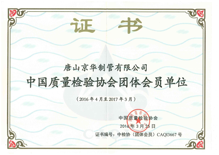 中国质量检验协会是质检总局主管下的质量检验行业组织和质量专业社团机构,以产品质量监督抽查和质量检测结果为依据向广大客户选购产品提供公正科学的指导。这是中国质量检验协会对唐山京华质量工作、产品质量和企业实力的充分肯定和支持。