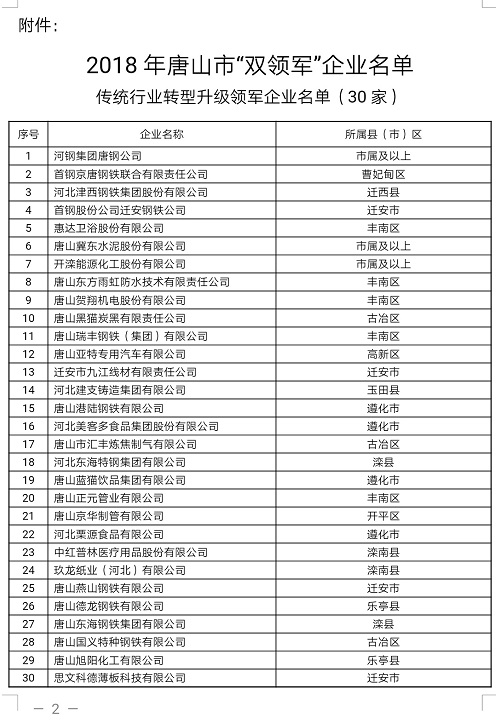 近几年来,唐山京华作为传统钢管制造企业,围绕转型升级确立了“特色发展”理念,坚持“创新、特色、领先、健康”八字方针推进企业由“大”向“特”转型,推进传统产品向高附加值优质特色产品转化。企业高附加值产品钢塑复合管不断占领市场,进入用户手中,高速立柱、外加工定制产品持续增量。企业生产装备快速向自动化、信息化、智能化发展,制造能力和水平不断升级,公司营业收入大幅增长。经开平区推荐,唐山市工业和信息化局、唐山市发展和改革委员会组织测评并经市政府批准,我公司被列入2018年度唐山市传统行业转型升级领军企业,成为全市30家入列企业之一,也是开平区唯一一家入选的传统企业。
