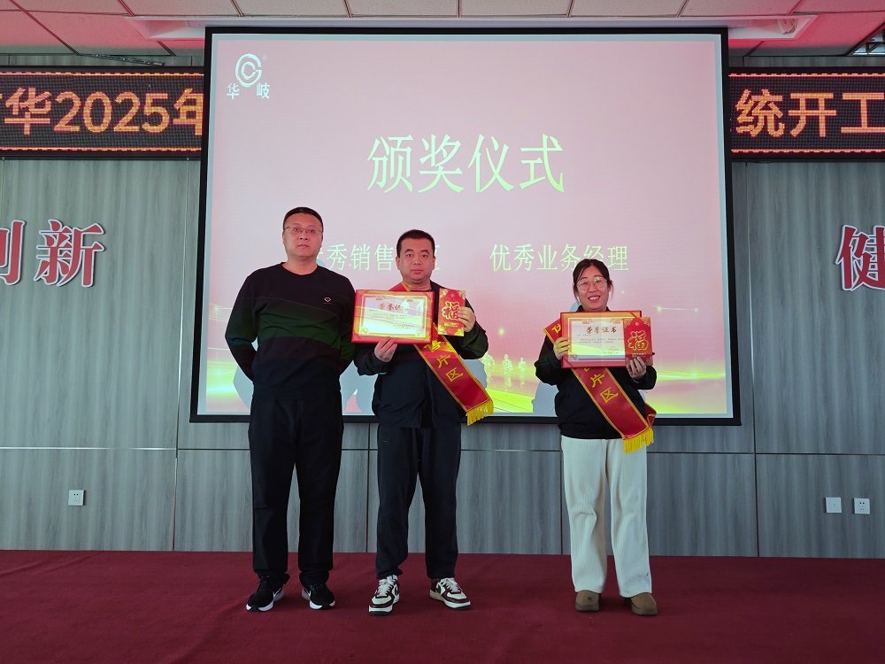 公司向螺旋片区、山东、天津片区颁发了“优秀销售片区”奖;向谢莹发、伊锋杰、邹世勇颁发了“优秀业务经理”奖项。